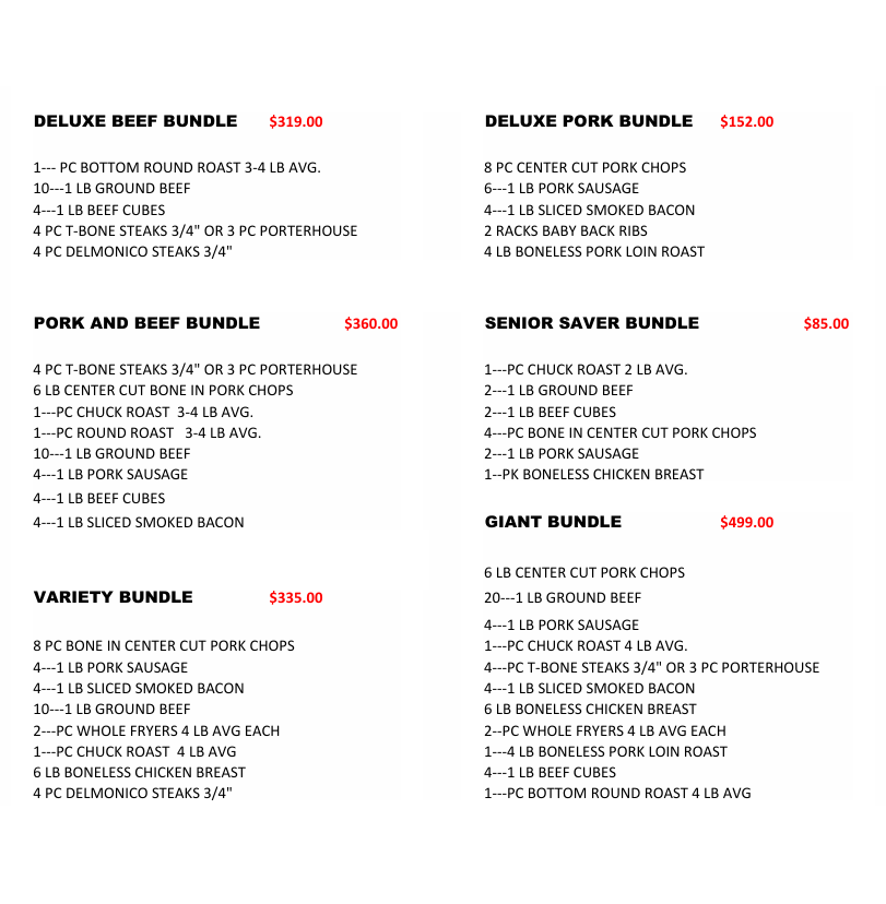 Meat Menu Meat Menu Meat Bundles MEAT CUTS & PRICE LIST Hind Quarter / Side of beef Whole (BBQ) Pig Prices Valentine's Special